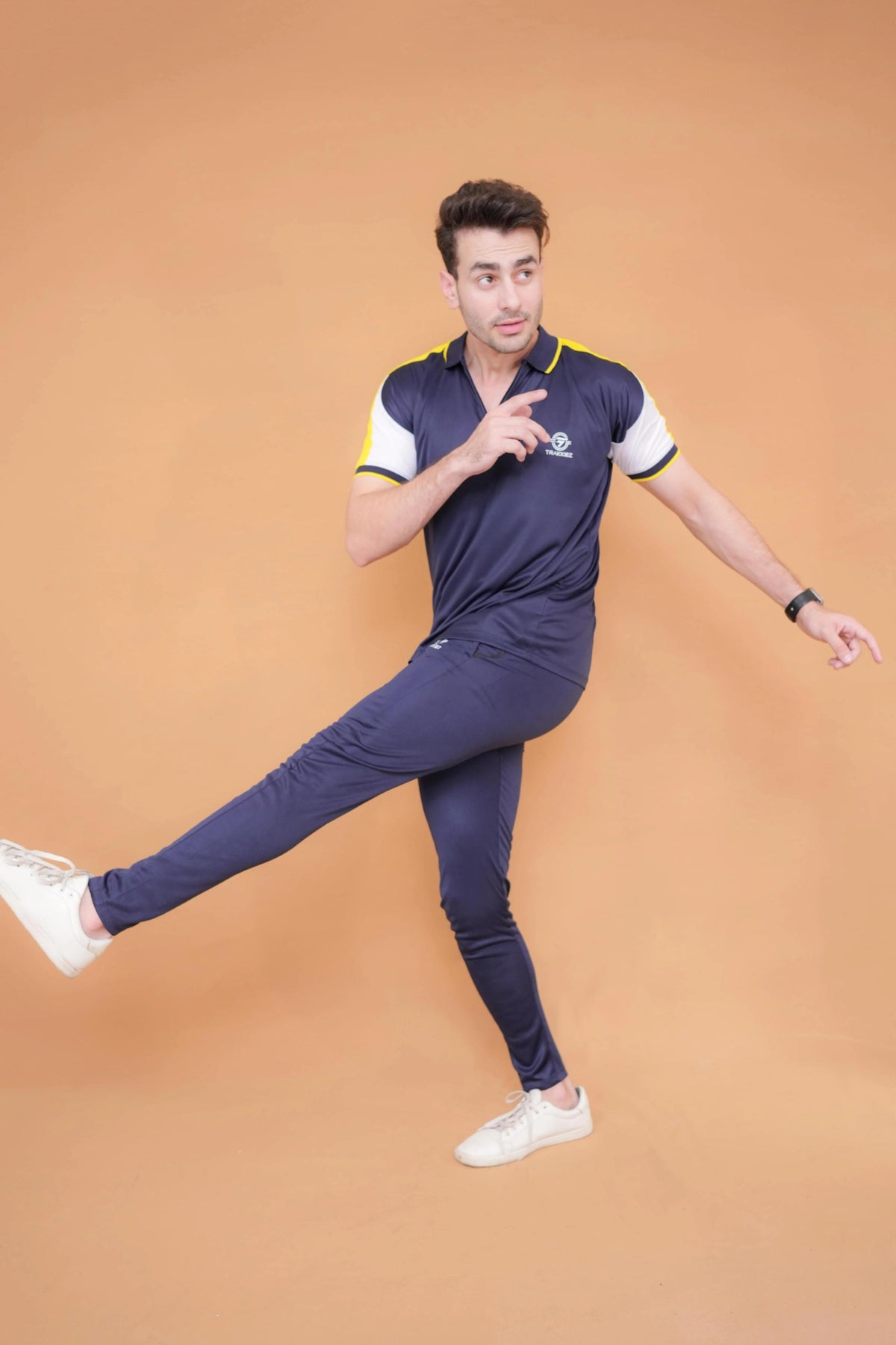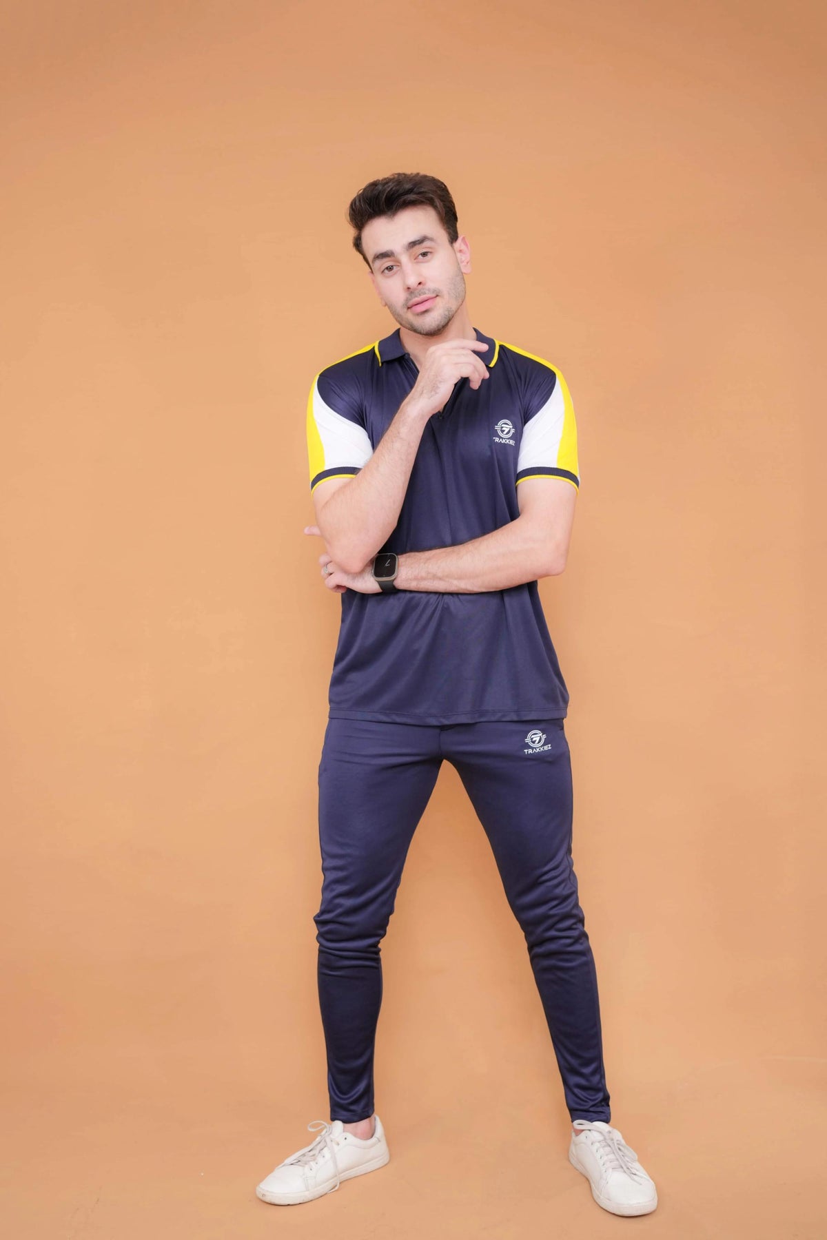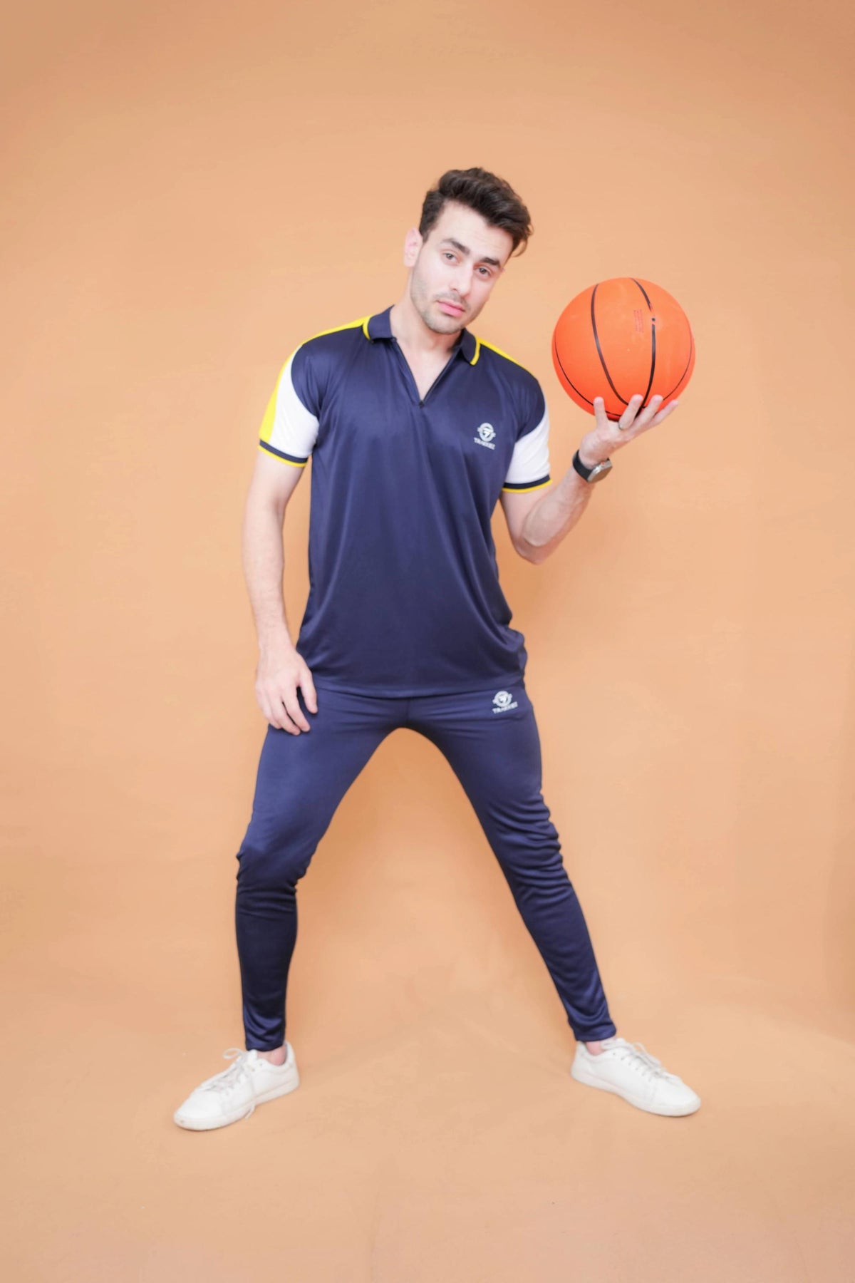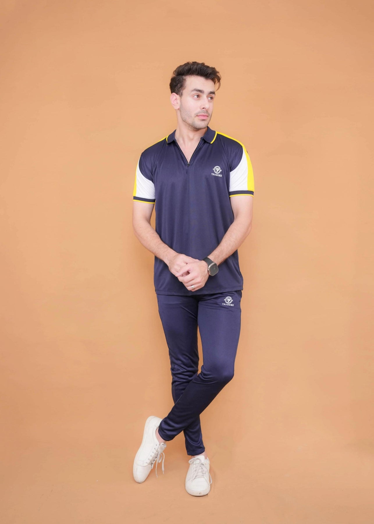 • Yellow/navy tracksuit set with contrast details and pockets